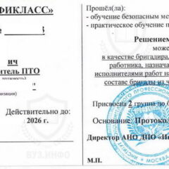 У каждого предприятия есть человек, который отвечает за технику безопасности, инструктажи, охрану труда на рабочем месте. Поэтому такие люди должны иметь данное удостоверение. Как только вы решили купить удостоверение о проверки знаний, приглашаем в нашу компанию «ВУЗ. ИНФО», где вы сможете выбрать подходящий документ.